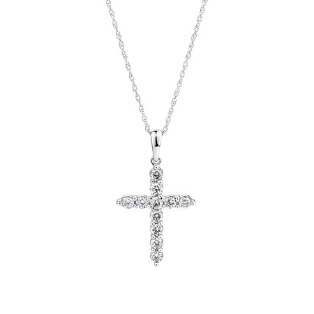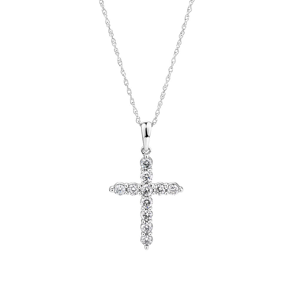 Cross Pendant With 0 50 Carat Tw Of Diamonds In 10ct White Gold